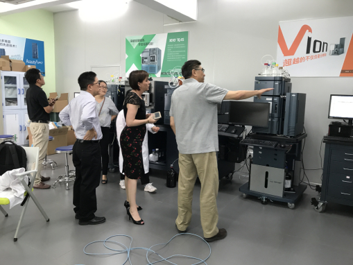 在谭文院长的带领下, Backx 院士及Gibson院长参观了漫蛙漫画 实验室,两方均对研究院在科研平台建设、国际科研合作等方面的工作给予了高度评价,并针对影像成像质谱、离子淌度质谱和四级杆飞行时间质谱等高性能质谱组学分析仪器的应用开展科研课题探讨。