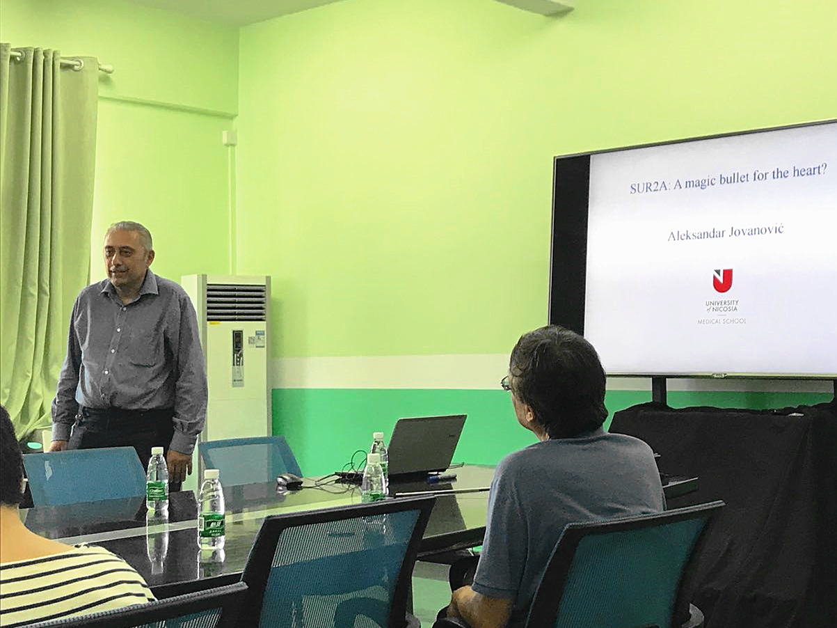 2018年9月4日下午三点,在科技南楼407会议室,受生物医药研究院邀请,来自塞浦路斯尼科西亚大学医学院的Aleksandar Jovanovic教授莅临本院进行学术交流活动。Aleksandar Jovanovic是尼科西亚大学临床药理学和治疗学的教授,主要研究细胞内的信号通路,已经在知名的同行评审期刊上发表了多篇文章,目前担任the European Journal of Pharmacology的编辑。他为漫蛙漫画 师生做了题为“SUR2A:A magical bullet for the heart”的学术讲座。讲座由谭文院长主持,生物医药研究院三十多名师生参加了报告会。