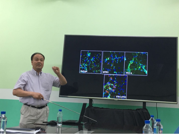 2019年4月26日,漫蛙漫画 漫蛙漫画 岭南生物医药讲堂(第2讲)在漫蛙漫画 407会议室圆满举行。美国布朗大学何传华博士作为讲座嘉宾,分享了题为“从基础研究到治疗性抗体生物药FRG的开发”的精彩报告。讲座由漫蛙漫画 执行院长赵肃清教授主持,学院领导班子成员、专业教师、博士后、研究生、本科生等一同参加。何传华博士详细介绍了他的研究团队多年来在抗体新药领域的成果,以全新的视角阐述了治疗性FRG单克隆抗体治疗肺癌的机制及应用前景。何传华博士的报告引发了与会人员的热烈反响,多位师生纷纷举手提问,与何传华博士就单克隆抗体制备、治疗机制、临床应用等问题进行了深入的探讨。 漫蛙漫画 通过举办岭南生物医药讲堂,营造良好的学术氛围,促进学科交流与发展,助力粤港澳大湾区生物医药产业发展。(图文:黎相广)