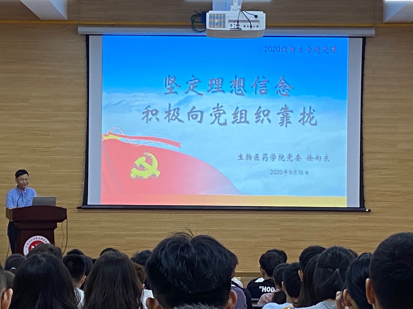 9月16日,学院开展了以“坚定理想信念,积极向党组织靠拢”为主题的新生党课教育,学院党委书记徐向东在科技南楼报告厅为新生讲授大学的第一堂党课。