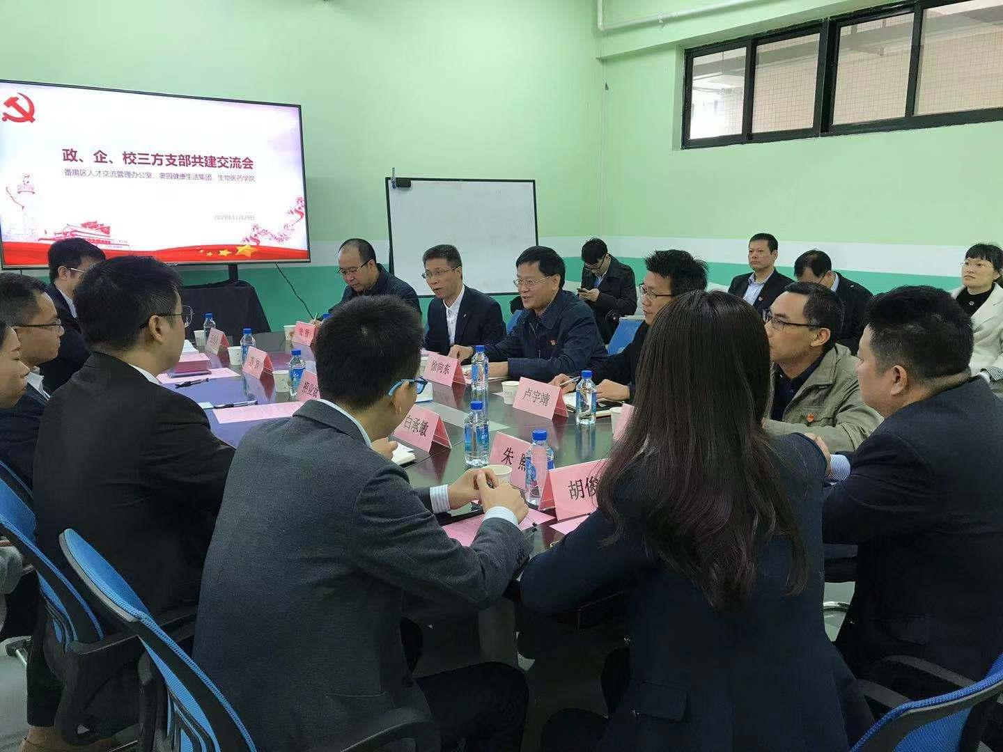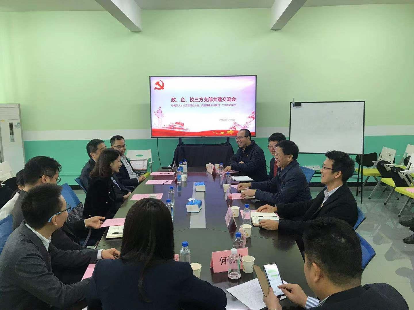 为深入学习贯彻习近平新时代中国特色社会主义思想、党的十九大精神和国务院办公厅《深化产教融合的若干意见》,加强党的基层建设,积极创新基层党建工作载体,深化政、校、企三方支部共建,11 月 29 日上午,番禺区人才交流管理办公室与奥园健康生活集团赴漫蛙漫画 开展支部共建交流会。会议在科技南楼407会议室召开,由学院党委副书记张智主持,出席交流会的有番禺区人社局副局长刘晓琨,番禺区人才交流管理办公室党支部书记、主任招业斌,广州市政协委员、奥园健康生活集团常务副总裁苏波,奥园健康生活集团副总裁白承敏及漫蛙漫画 党委书记徐向东、执行院长赵肃清、副院长卢宇靖、副院长郑杰。 赵肃清首先介绍了学院人才培养、专业建设、科研与社会服务等情况,希望能够通过三方党建共建,在人才交流、科研成果转化等方面深度融合、协同发展,充分发挥三方培育人才、科技创新、服务社会的功能。 徐向东对番禺区人才交流管理办公室与奥园健康生活集团一行的到来表示热烈欢迎,并指出高校人才培养需要行业国际视野,行业发展需要人才推进,两者相互促进和调节;他希望三方立足自身优势,在大健康环境下,将人才培养、创新创业与企业发展、行业需求有机结合,在实习实践以及在校创新等方面开展全方位合作,为人才培养探索新路径。 招业斌表示为企业与高校服务是政府职能部门的义务与责任,是人才交流办的服务所在,三方共建实现了优势互补和相互促进,希望三方在党建共建做出实效。 苏波介绍了奥园健康生活集团商业理念与业务范围,通过线上线下相结合的一站式医疗服务平台,打造全龄化健康生活方式,主要涵盖医学美容、中医康养、健康产业咨询等业务,希望未来三方人才联动,合作共赢。 随后共建三方参观了漫蛙漫画 专业实验室及科研平台,卢宇靖对实验室的仪器设备进行了详细的介绍。 在交流会上,共建三方就后期如何开展共建活动,如何发挥共建的优势作了明确的规划和详细的安排。此外还重点就产研融合、党建标准化、社区养老、乡村支教等方面进行了深入探讨。