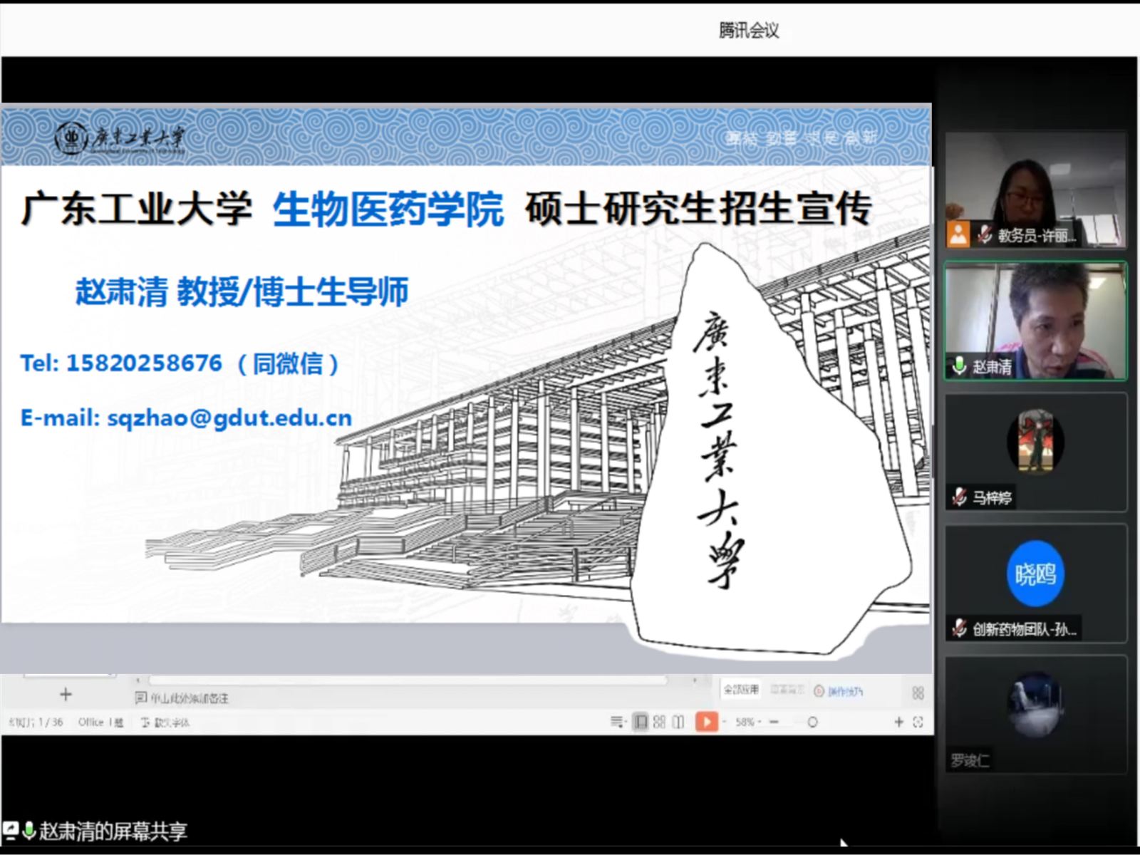 为了让营员全面充分地了解学院的科研团队和研究方向,学院制药工程团队黄华容副教授、生物工程团队傅明辉教授、重大慢性疾病与创新药物研究团队李芳红教授、创新药物与精准医学团队孙晓鸥副教授悉数来到直播间,依次介绍了各个团队的整体情况、科研方向、研究队伍、研究生培养模式等,并在线上与各位营员进行了交流,耐心地解答他们的疑问。通过各团队的介绍,营员们进一步感受到了科研团队的底蕴和风采。