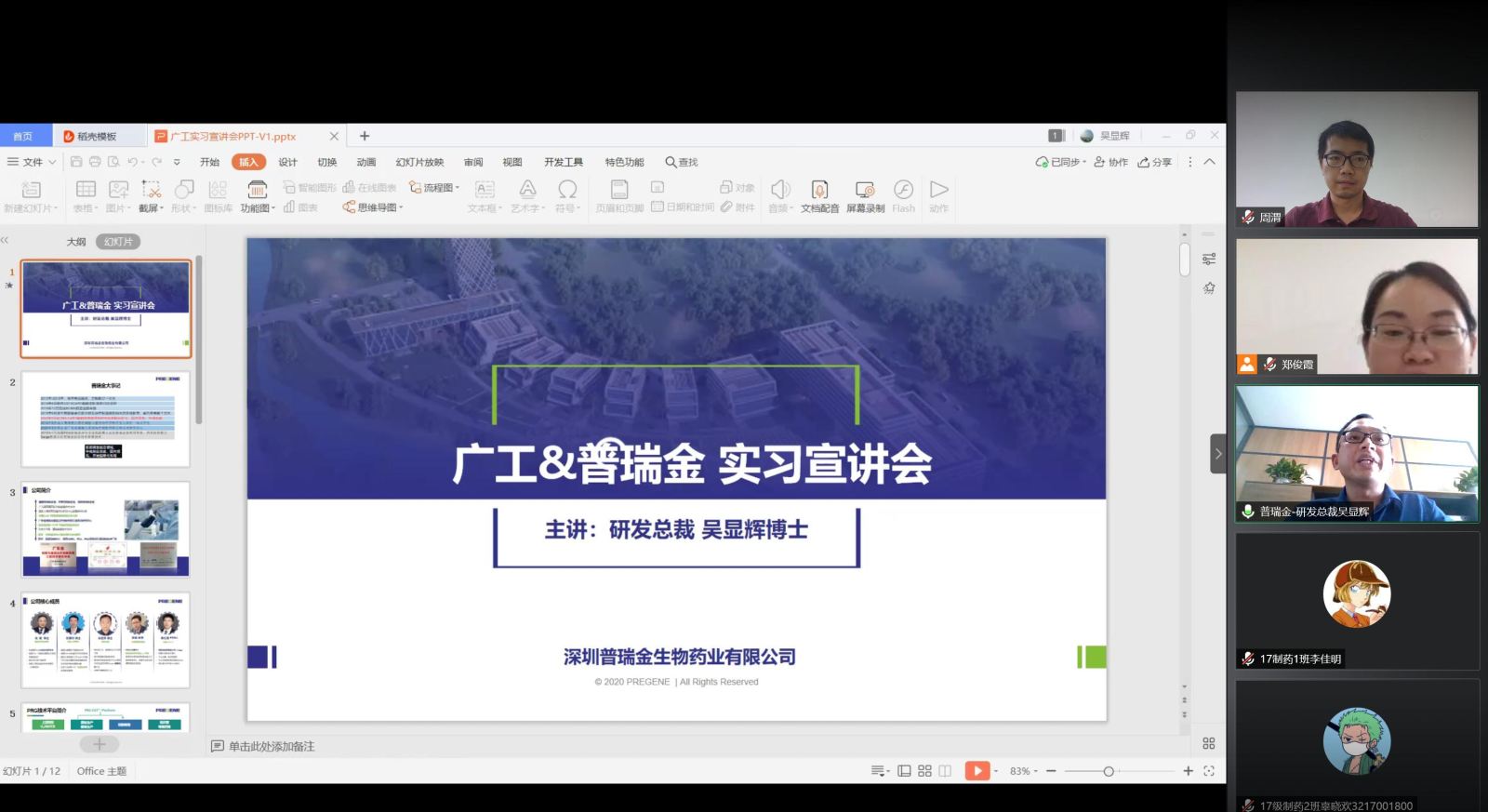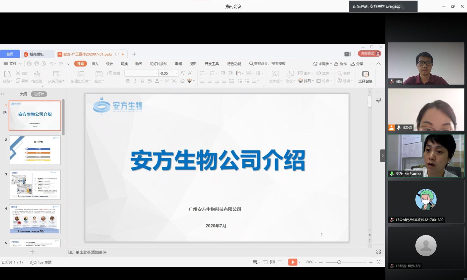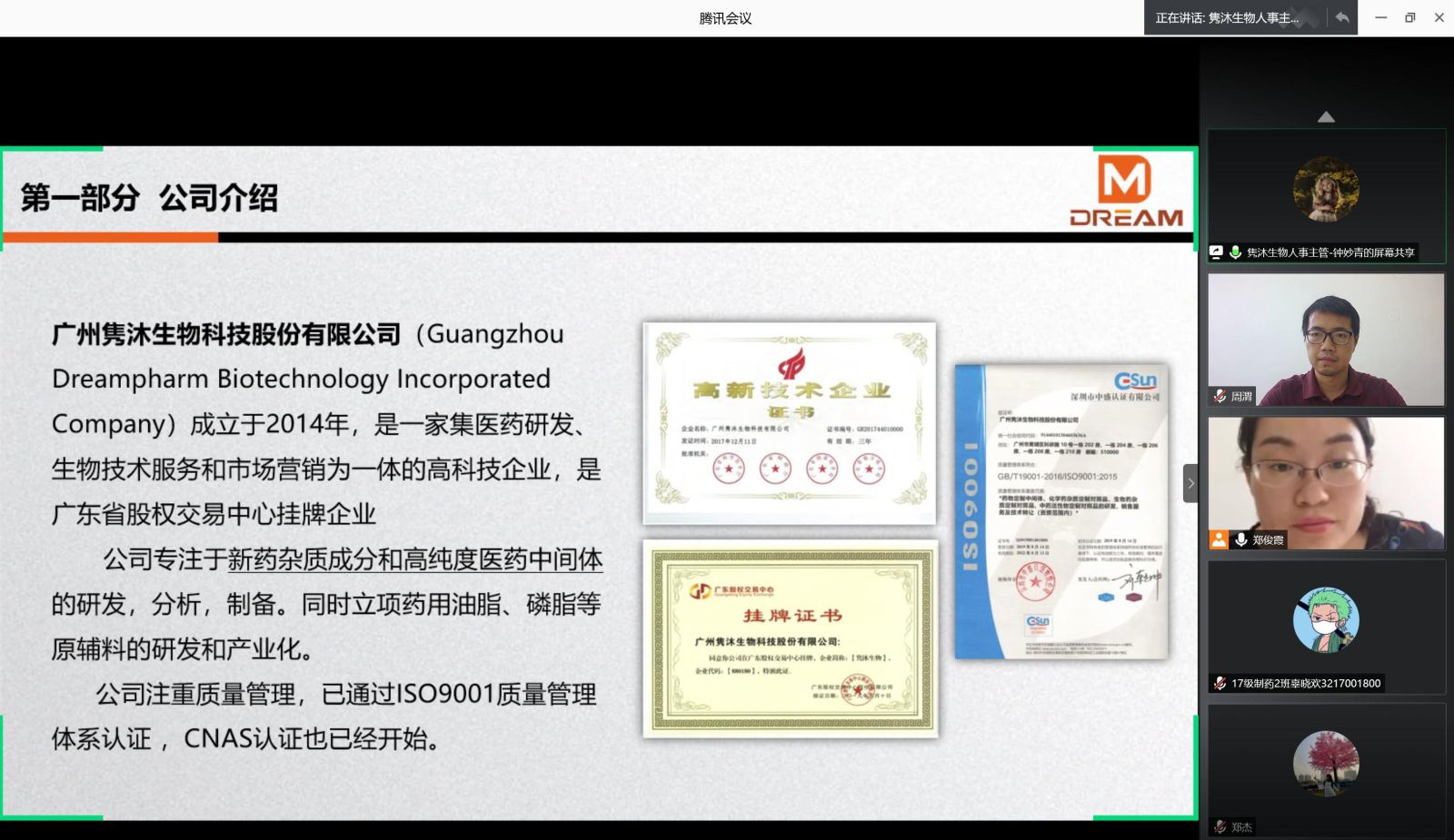 2020年7月15日,漫蛙漫画 联合广东省十三家生物医药企业,举行校企联合培养宣讲会,正式启动2017级“3+1”校企联合培养计划。广东省测试分析研究所等十三家生物医药企业代表,学院党委副书记张智,副院长郑杰,校内导师代表周渭、廖问陶、王华倩、汤亚东、王文霞、刘旭杰,2017级制药工程和生物工程专业学生等参加了此次的宣讲会。宣讲会由制药工程系主任郑俊霞主持。
