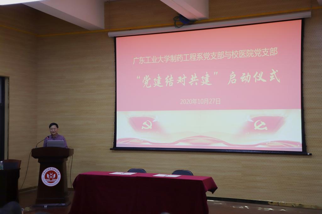 共建双方党支部书记介绍了各自支部概况及共建设想。丁金龙介绍了制药工程系党支部在“全国党建工作样板支部”方面的建设概况,提出两支部将“不忘初心、牢记使命”,以“立德树人”为根本任务,发挥各自的专业与资源优势,努力为生物医药人才培养、粤港澳大湾区生物医药建设及社会服务方面做贡献。何洲介绍了校医院党支部工作和业务概况,提出将强化两支部在教学和科研上互动交流,响应学校“医工结合”号召,充分发挥两支部优质资源,增强力量,促进业务工作的发展,更好地服务于在校师生和社会。