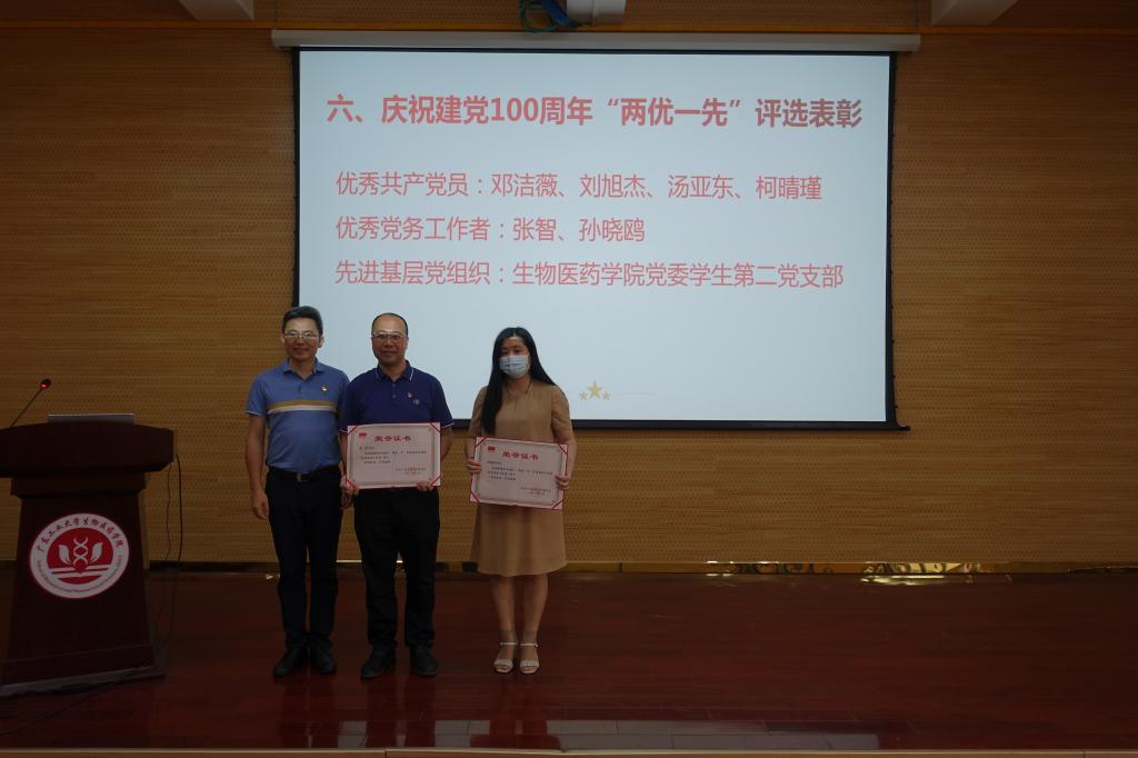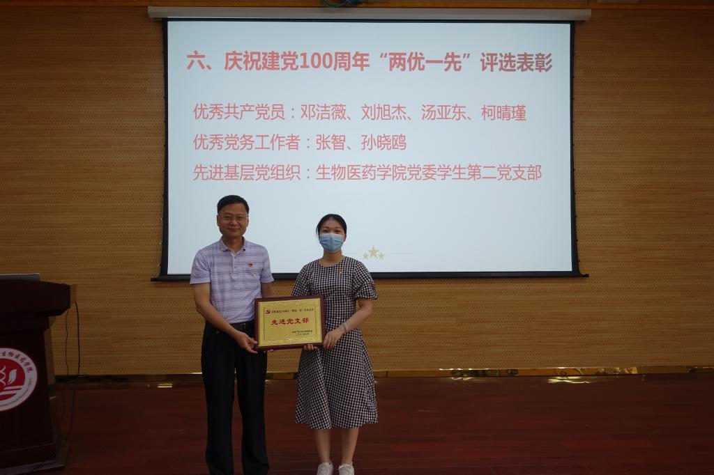 学院党政领导班子成员为在学校庆祝建党100周年“两优一先”评选表彰中获得优秀共产党员、优秀党务工作者表彰的教职工、获得先进基层党组织表彰的党支部颁发荣誉证书;为在漫蛙漫画 第二届青年教师授课竞赛暨漫蛙漫画 第九届青年教师教学竞赛预赛中获奖的教师颁发荣誉证书及奖金。