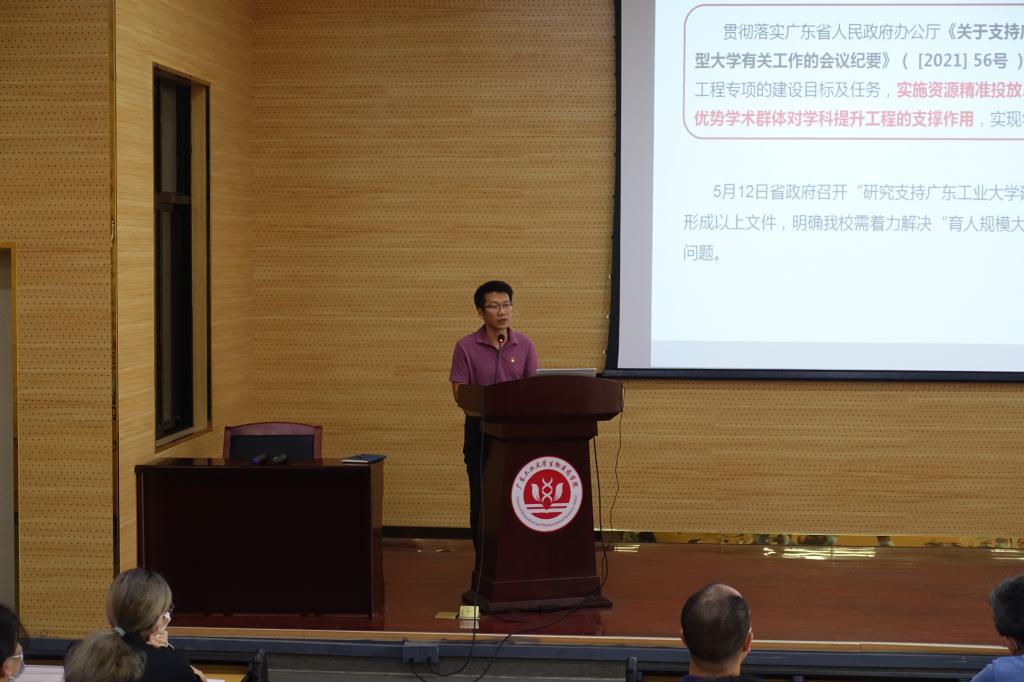 副院长卢宇靖介绍了学院学科提升工程之科研团队遴选与管理办法思路,希望符合条件的教职工积极组建科研团队,由学院根据学科提升工程专项资金给予支持,争取在国家省部级项目、重大成果、重大平台、高水平论文、师资队伍建设、人才培养、成果转化等方面取得更大成就。