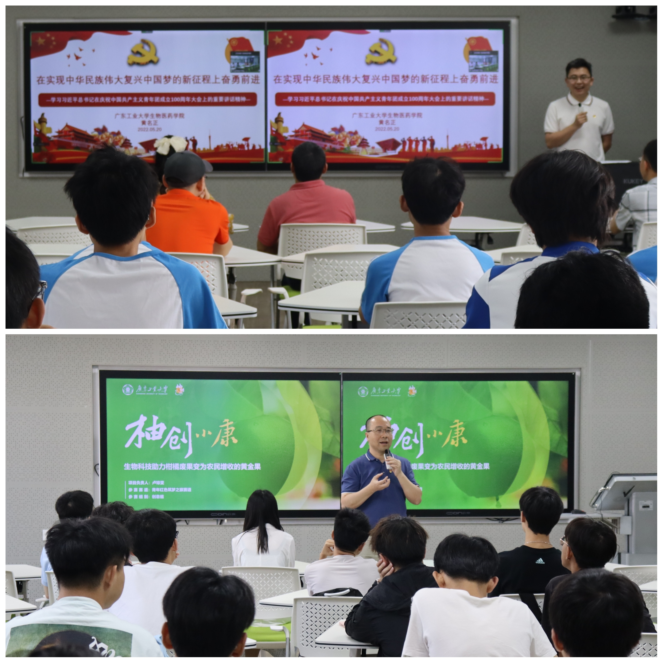 5月20日下午,漫蛙漫画 与先进制造学院开展“喜迎二十大 永远跟党走 奋进新征程”团支部结对共建暨主题团日活动,黄名正以“在实现中华民族伟大复兴中国梦的新征程上奋勇前进”为主题,带领结对共建的两个团支部系统地学习了习近平总书记在庆祝中国共产主义青年团成立100周年大会上的重要讲话精神。张智以“柚创小康”团队为例为先进制造学院学生代表分享团队创新创业项目,并与现场的学生代表就跨校区合作、项目打磨等方面的问题进行了深入的交流,鼓励学生们结合时事热点和专业特色,准确把握创新创业选题,培养创新思维,提升科创能力。