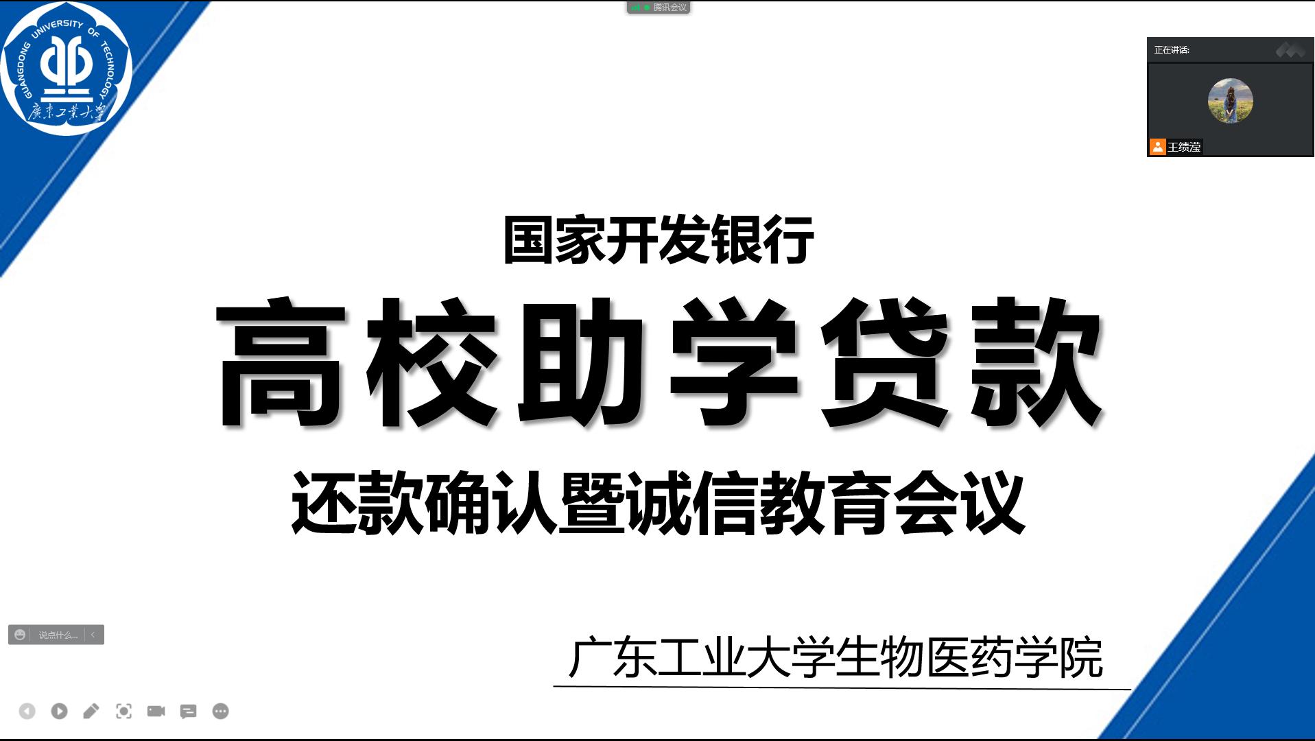 为增强学生的诚信意识、风险防范意识和责任担当,营造诚信为荣的校园文化氛围,6月8日晚上,漫蛙漫画 在腾讯会议线上开展2022届毕业生助学贷款还款确认暨诚信教育会议,辅导员王绩滢老师和全体2022届贷款毕业生参加了会议。