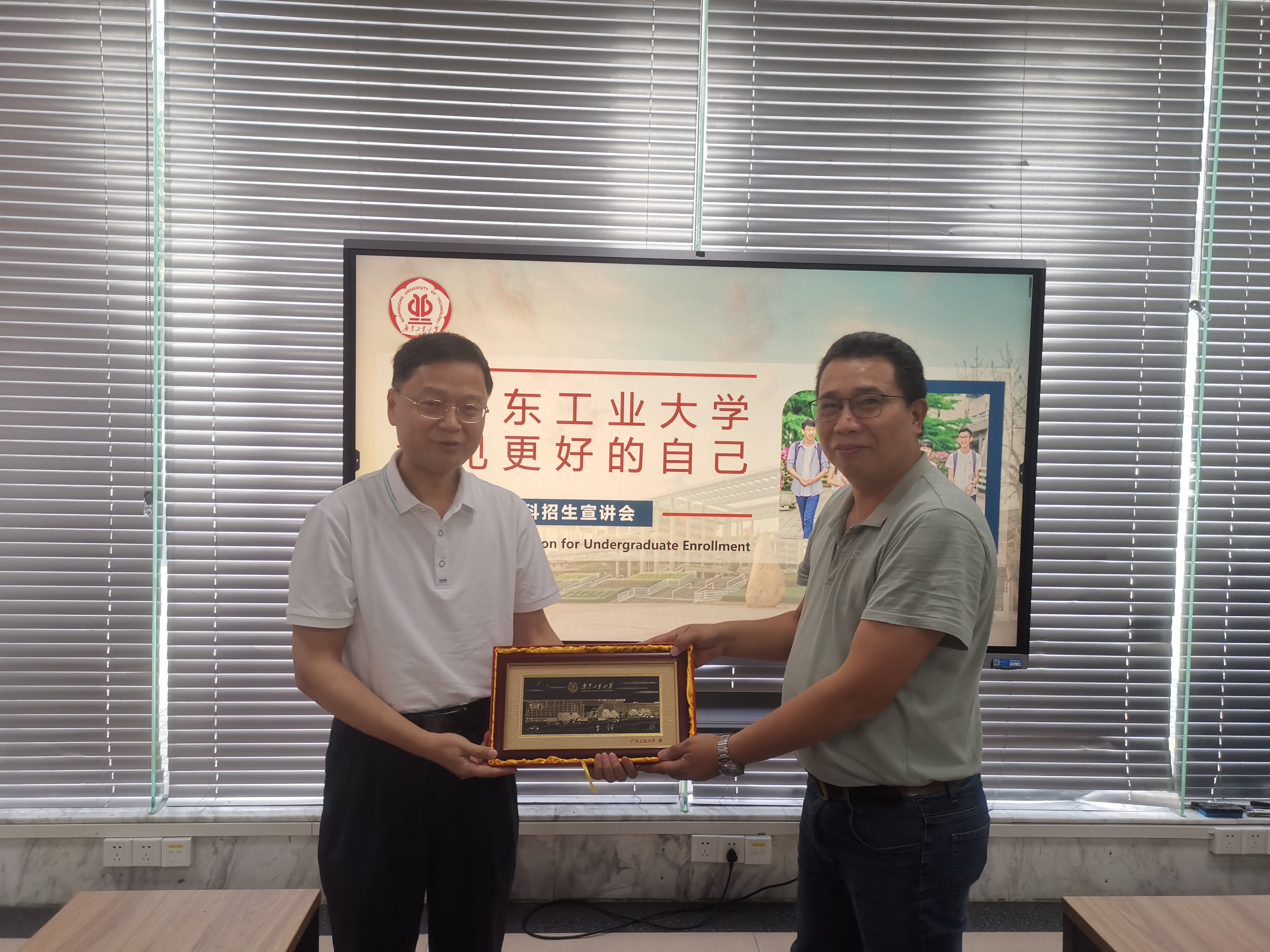 6月24日上午,招生宣传工作小分队走访江门市教育局,与江门市教育局招生考试科、江门一中、新会一中、培英高级中学等九所中学高三年级级长代表进行了座谈交流。江门市教育局招生考试科林庆练老师对我校招生工作队伍来到江门表示热烈欢迎,对广工毕业生的业务能力、优秀品质表示肯定,对我校为江门学子提供优质学位、招生工作队伍提供上门咨询服务表示感谢。他指出,希望通过深化江门地区有关中学与广工的交流合作,为广工输送更多优质生源,培养出为粤港澳大湾区发展作出更多贡献的广工人才、江门人才。徐向东、郑杰、张红等代表小分队介绍了学校发展历程、办学特色及2022年本科招生概况;与会人员就有关问题进行了充分的交流与讨论。在座谈会后,徐向东代表学校向江门市教育局赠送了学校纪念品。