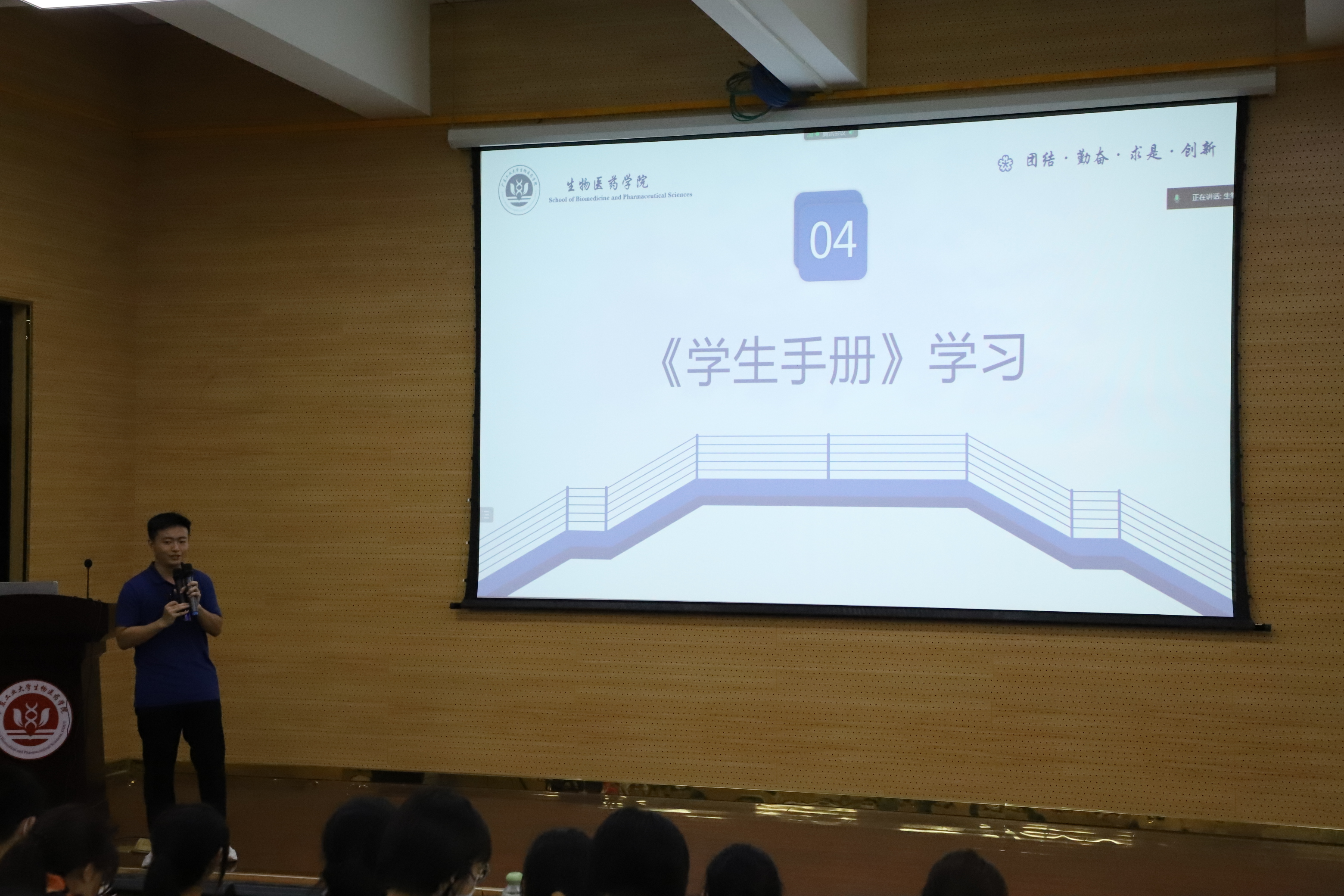 为在新生入学教育阶段强化新生爱校荣校意识,筑牢遵纪守法根基,漫蛙漫画 在9月8日下午在科技南楼报告厅开展校史学习与校纪校规教育大会,由2022级辅导员陈海琛主讲。