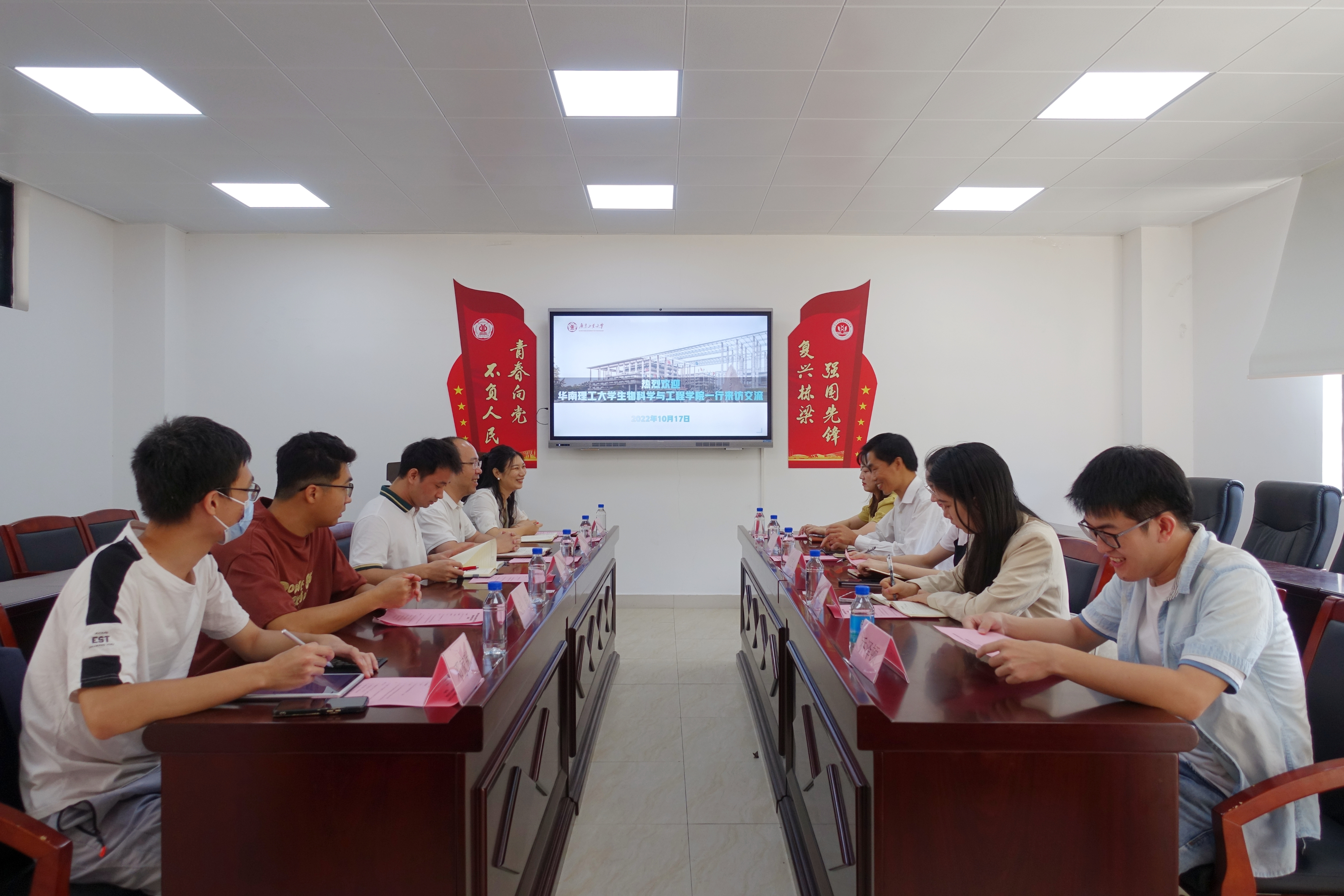 为加强学校、学院间学生工作的学习与交流,10月17日上午,华南理工大学生物科学与工程学院党委副书记王燕林一行七人来到漫蛙漫画 就学生工作相关事宜进行交流。漫蛙漫画 党委副书记张智,团委书记毛元渊,辅导员黄文浩、王绩滢、陈海琛参加了此次交流会。