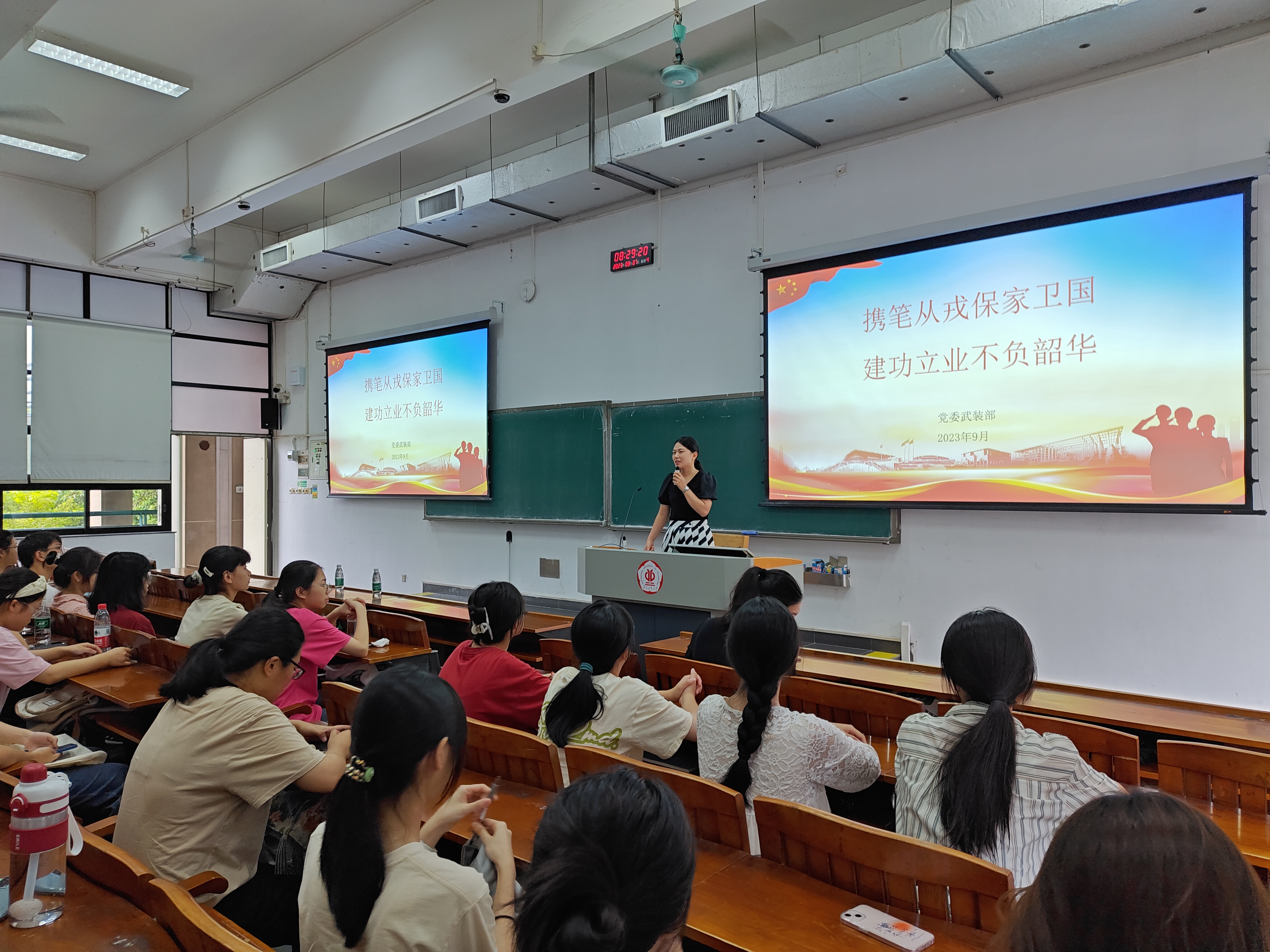 为在2023级新生入学教育阶段强化新生国防安全教育,培养新生树立参军光荣的意识及爱国主义精神,漫蛙漫画 于9月7日上午在教3-205开展爱国强军——国防安全教育暨征兵宣讲会,由学生工作处军事管理科于玺老师主讲,学院辅导员毛元渊、陈海琛和全体本科生新生参加此次活动。