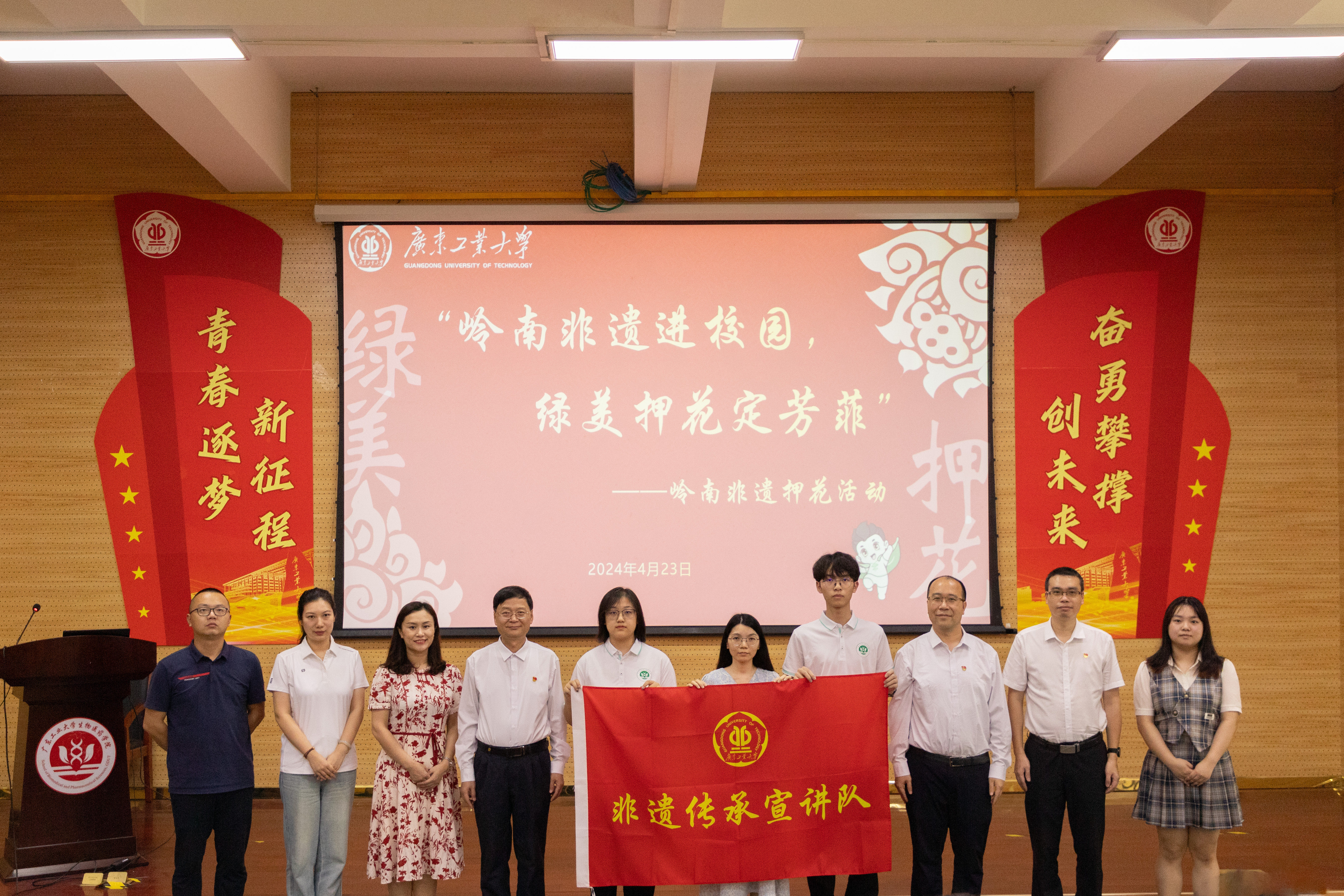 随后进行了校外实践导师聘任仪式及非遗传承宣讲队授旗仪式。后续该队伍将通过组织举办活动,让更多同学了解、学习中华民族非遗文化。