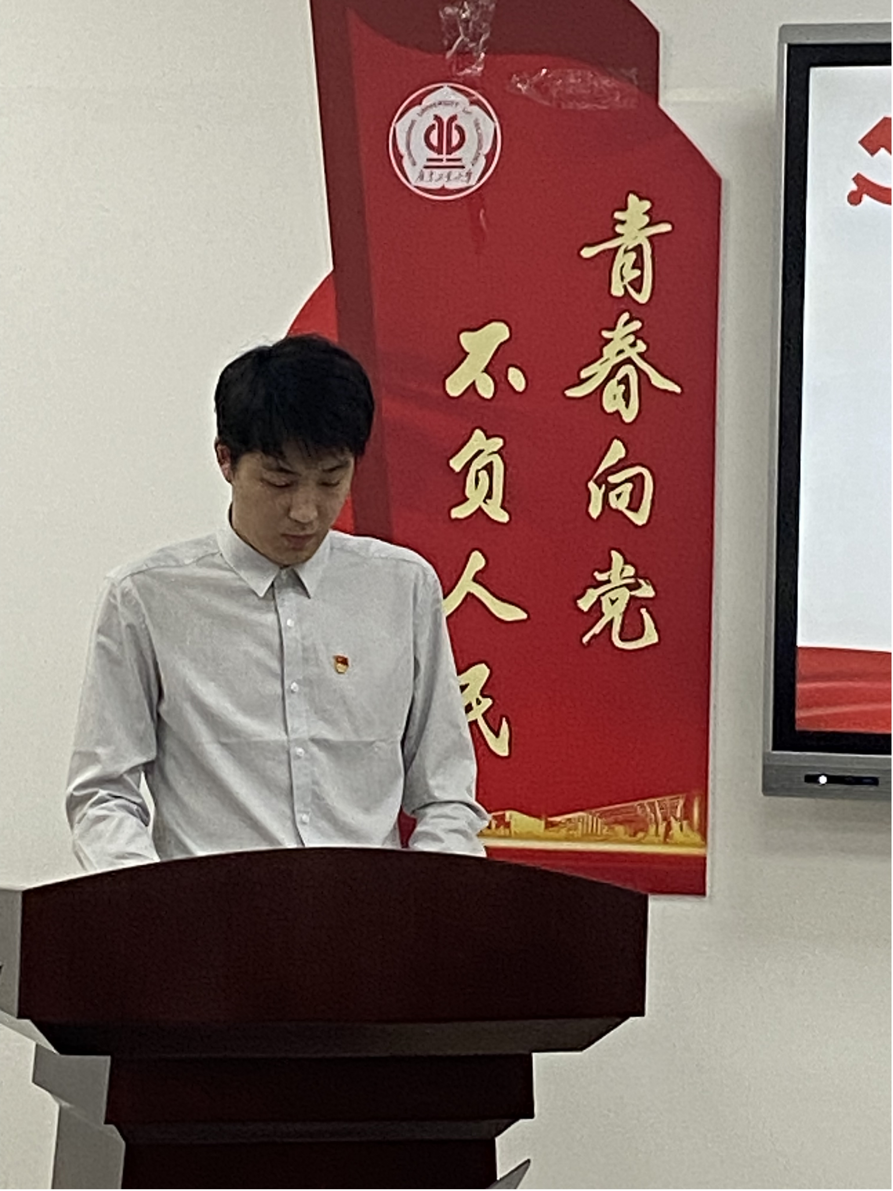 毕业生党员代表李震对学院表达了真挚的感激之情,表示将带着学院的期望,带着党员的使命,走向社会,服务人民,无论在哪个岗位上,都将以实际行动践行着共产党员永不褪色的初心使命,为实现中华民族伟大复兴的中国梦贡献自己的力量。本学期新发展党员代表张艺瀚表示将认真履行党员义务,严格要求自己,接受党组织和同学们的监督,严于律己、勤奋进取,努力做一名合格而且先进的中国共产党员,为党的事业、为我国的社会主义现代化事业贡献毕生的精力和热血。