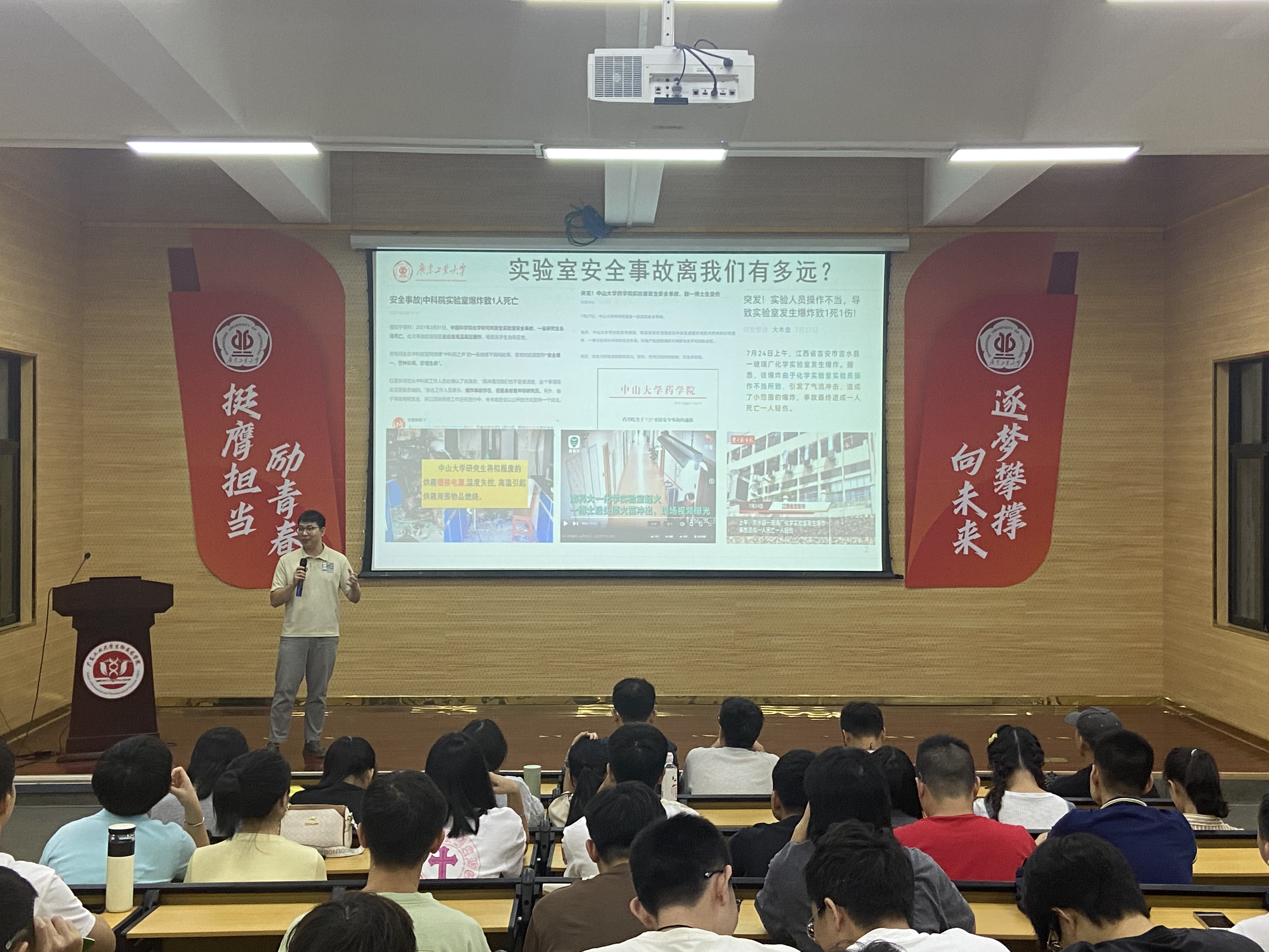 为加强漫蛙漫画 新生的实验室安全意识,提高应急处理能力,营造安全、规范、干净、整洁的实验室环境,守护学生生命安全,9月6日上午,学院副院长卢宇靖、实验室中心主任陈修财在科技南楼学术报告厅分别为2024级本科生、研究生新生作实验室安全教育专题讲座。