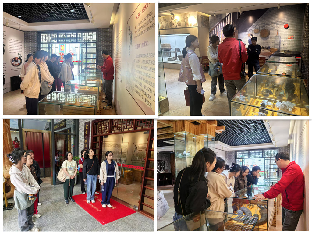 植树活动结束后,师生党员们来到了广东采芝林非遗文化体验馆。该馆是采芝林中药产业文化园的重要组成部分,也是广州市荔湾区中医中药文化的瑰宝之一,集科普教育、文化展示、非遗体验于一体。在馆内,师生们首先参观了采芝林中药文化博物馆。馆内丰富多样的藏品让大家目不暇接,其中包括多达三千种的药材和标本。这些珍贵的展品生动地展现了岭南及采芝林传统中药文化的发展历程,每一件藏品都承载着深厚的历史文化内涵。师生们在讲解员的带领下,认真聆听着每一种药材背后的故事,深入了解了中药材的疗效、炮制技艺以及在中医理论中的独特地位和作用。许多同学对一些珍稀药材表现出浓厚的兴趣,不时提出问题,与讲解员进行深入交流。