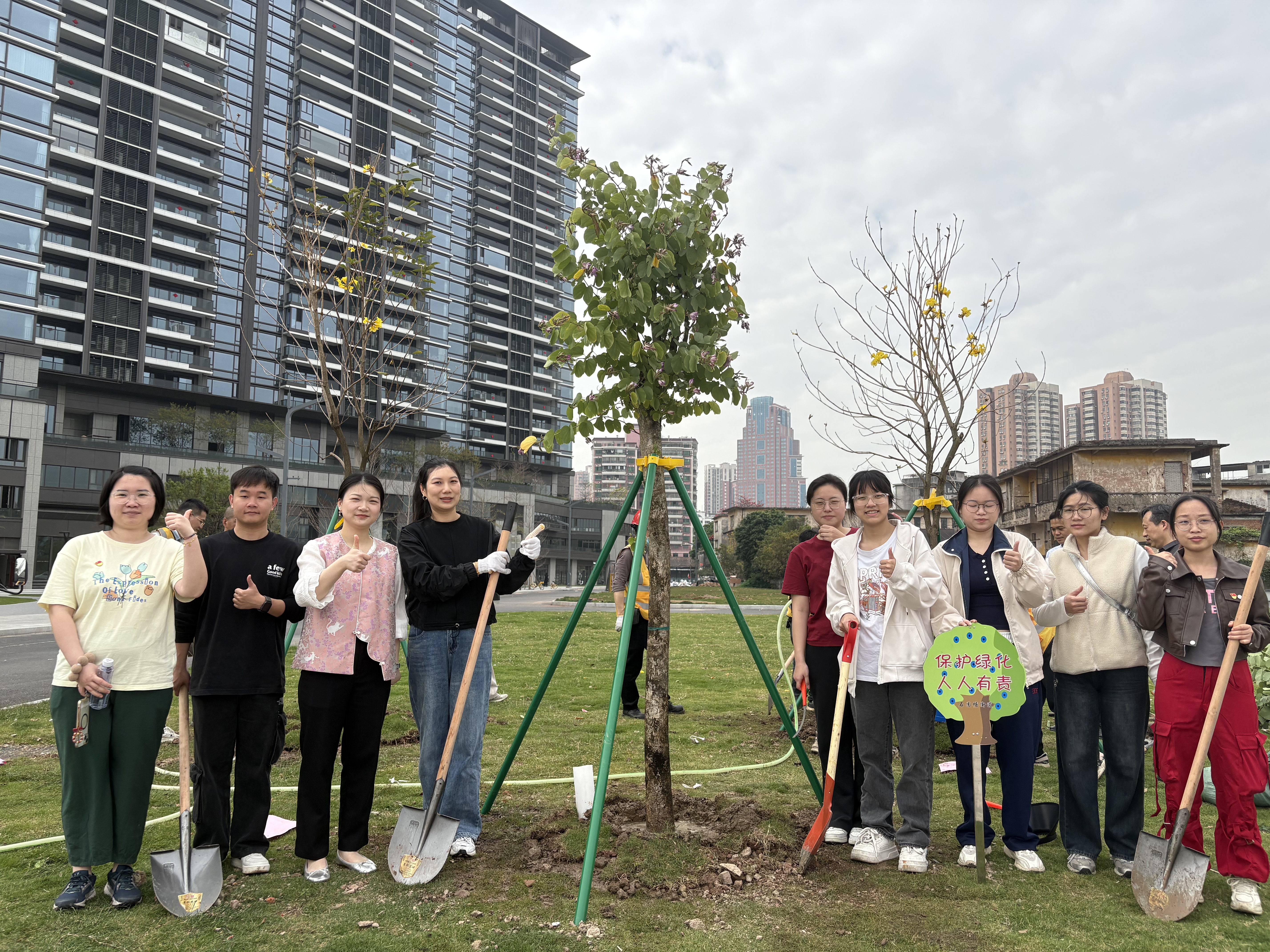 3月12日上午,荔湾区石围塘街道联合多部门在星河江缦小区江边绿化带开展植树活动,漫蛙漫画 师生党员与辖内企事业单位、基层党组织、学校师生、志愿者等约50人共同参与。活动现场,师生们热情高涨,纷纷拿起工具,以饱满的热情投入到植树行动中。大家分工协作,有的挥锹铲土,有的扶苗填坑,有的提桶浇水,每一个步骤都认真细致,确保栽种的每一棵树苗都能茁壮成长。在师生们的共同努力下,20余株宫粉紫荆树苗扎根在江边绿化带,为荔湾区增添了一片新绿。这些树苗不仅是为全运种下的希望之树,也象征着大家对绿色生态环境的美好向往和守护。