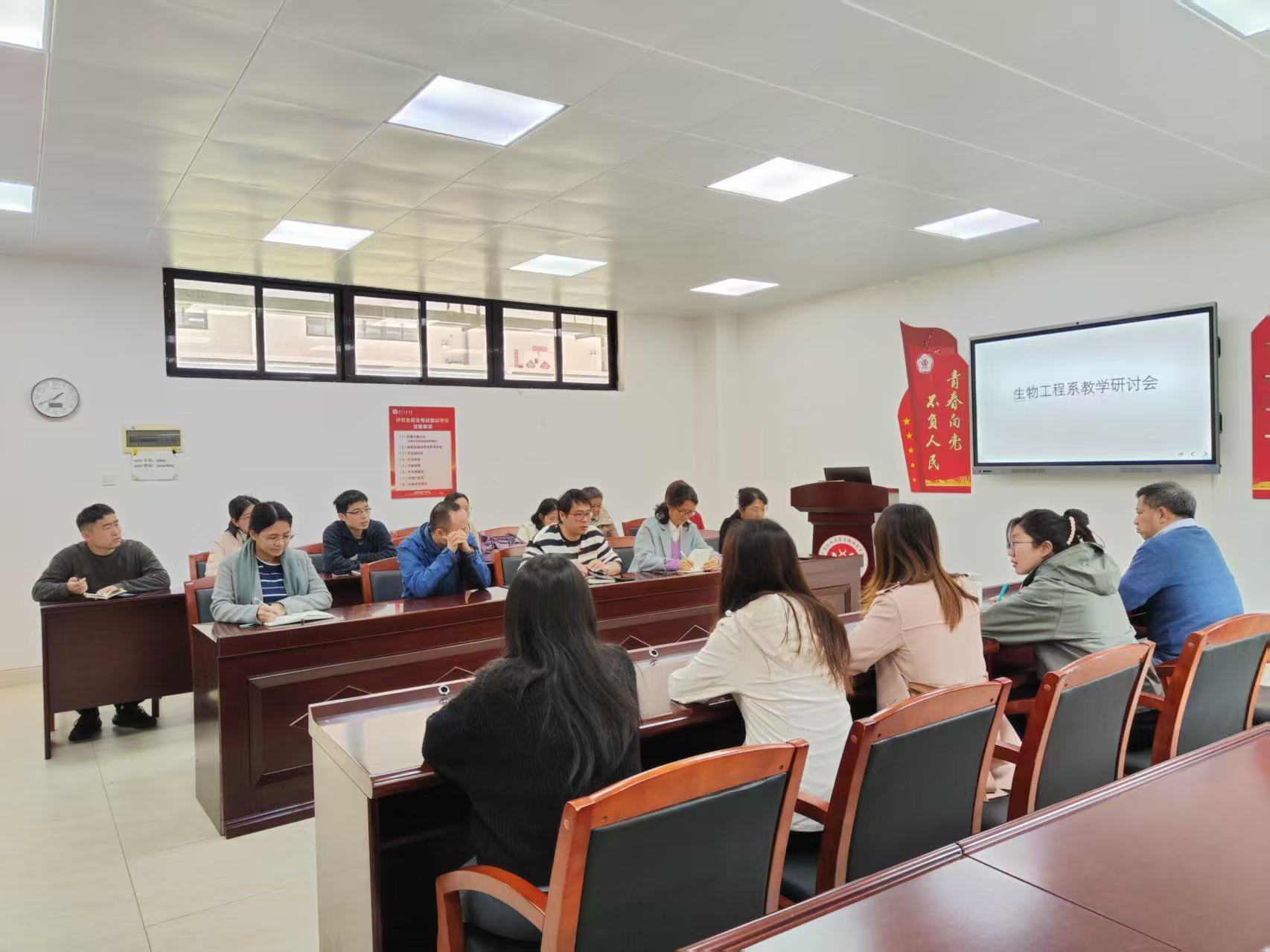 会议围绕“深化教学改革,服务学生成长”主题展开。首先,廖问陶就新版生物工程专业培养方案给老师们作专题报告,部署了任课教师教学大纲的修改要点,系内教师针对教学大纲的优化方向展开讨论,明确课程目标、教学内容与课程考核需紧密对接前沿技术与产业需求、支撑新版培养方案毕业要求的达成。随后,侯雪丹传达了学校举办的“基于OBE理念的专业建设与新版认证标准解读”专题讲座精神与核心要求,帮助教师深入理解产出导向理念,强化思政引导、工程报国、正确价值导向,为课程建设与人才培养质量提升提供指导。