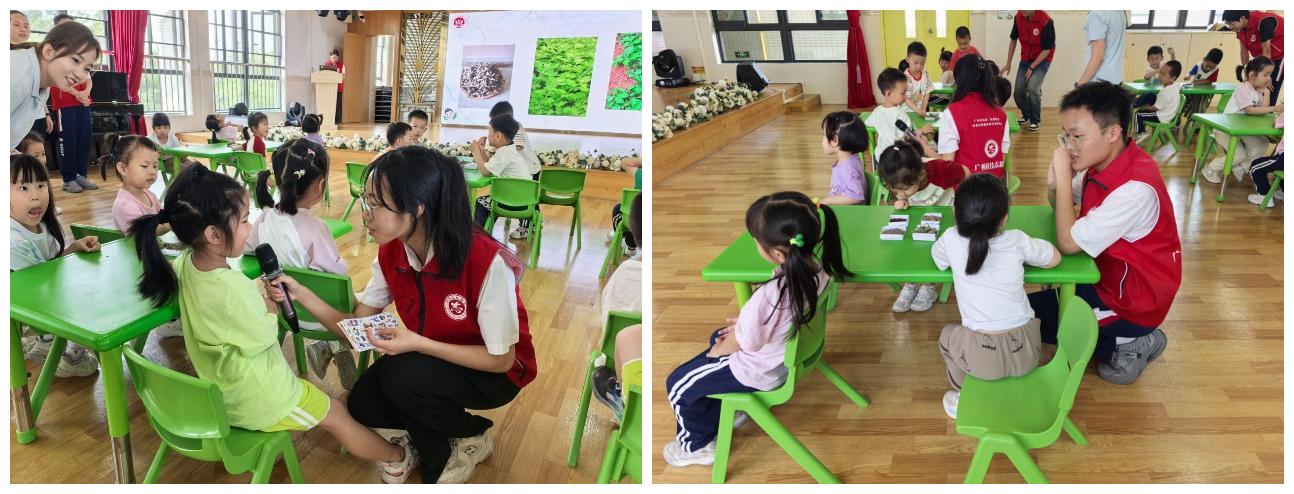 五月,漫蛙漫画 “知行百草”志愿服务队走进大学城小谷围中心幼儿园和广州大学附属小学,给小朋友们带来了一场别开生面的端午中草药科普活动。