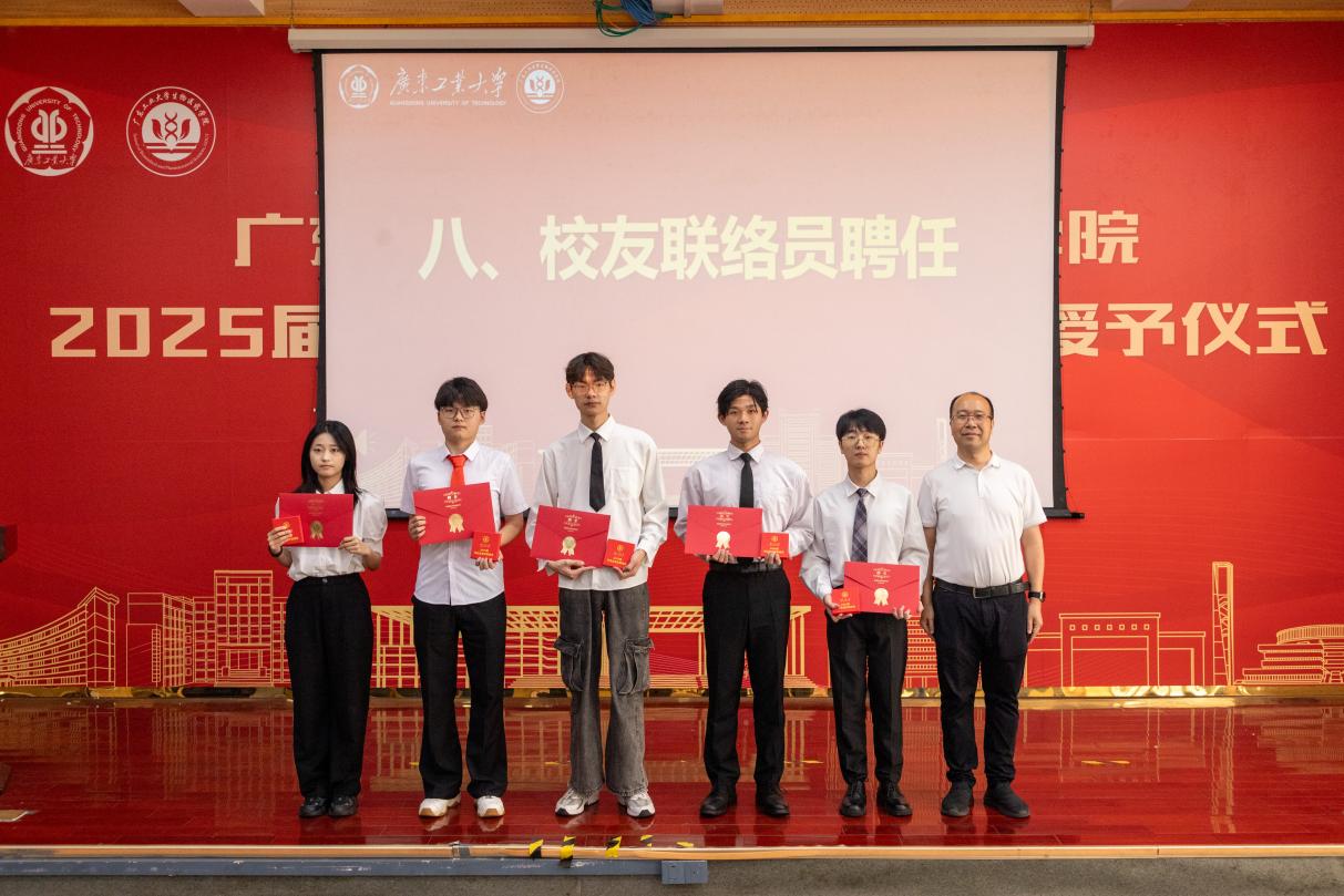 随后,卢宇靖为2025届优秀毕业生代表颁发荣誉证书,表彰他们在校期间取得的优异成绩和突出表现,张智为2025届校友联络员颁发聘书,希望校友联络员牢记使命担当,以赤子之心搭建母校与校友的桥梁,为学校的人才培养与事业发展注入源源不断的校友力量。
