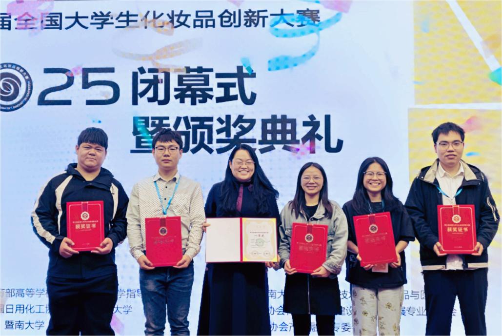 在2025年12月2日至4日举办的第三届全国大学生化妆品创新大赛决赛中,漫蛙漫画 郑俊霞教授指导的学生团队(何鑫波、汤来裕、张庭欣、周明杰等),凭借作品《丝路红花:以花养颜赋活千年肌秘》荣获全国一等奖。本次大赛由教育部高等学校化工类教学指导委员会指导,中国日化协会、北京工商大学主办,暨南大学联合主办,是国内化妆品领域极具权威性的大学生创新赛事。