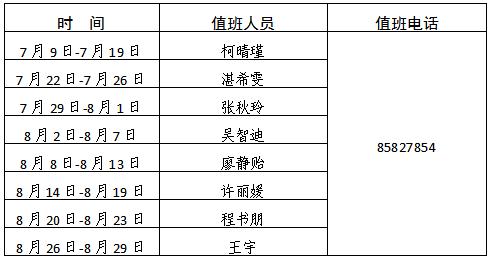 为方便教职工假期办事,党政办公室将按以下时间值班: