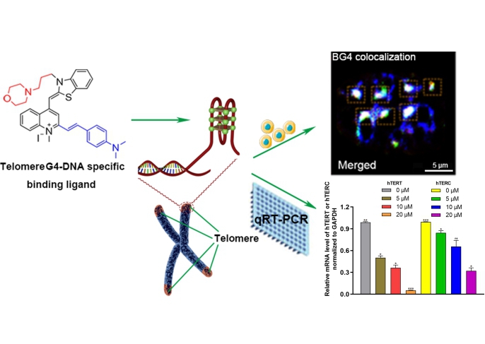端粒和端粒酶保护染色体的机理研究获得2009年度诺贝尔生理或医学奖。染色体端粒被科学家称作“生命时钟”,端粒/端粒酶及其复合物的特殊结构与功能,参与了癌症、衰老、炎症、表观遗传等许多关键的生理过程。端粒富含鸟嘌呤(G)序列形成的G-四链体(G4)结构可能对端粒功能起着调控作用。本研究开发了一系列靶向端粒G4的小分子配体既能特异性荧光成像癌细胞端粒结构,又能显著下调相关蛋白hTERT和hTERC表达,有效抑制端粒酶活性,诱导癌细胞衰老。综述近年研究进展揭示,中药成分及活性小分子通过作用端粒G4结构,调控端粒/端粒酶功能,是具有重要应用前景的抗肿瘤或抗衰老的策略。