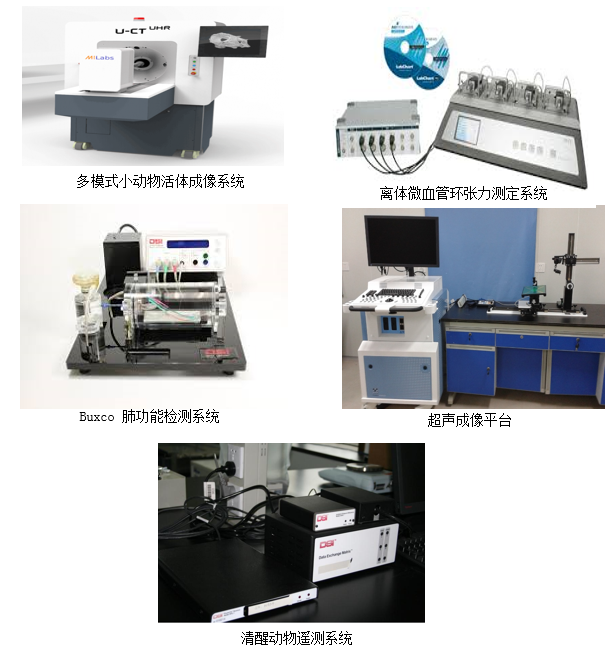 生物医药研究院与广东省实验动物监测所合作,建立模式动物及转化医学中心。广东省实验动物监测所,拥有广东省实验动物重点实验室、广东省疾病模型重点研究基地和省部产学研示范基地疾病模型研究基地等科研平台。在疾病模型制作、药理药效学研究、模式动物净化和保种等方面拥有较强的科研实力。生物医药研究院对哮喘动物模型、心血管疾病动物模型和离体心脏灌流等模型有丰富的研究成果。两者强强联合,抓住转化医学的战略布局。本平台的设备包括:Buxco大小鼠肺功能检测系统、清醒动物遥测系统、离体微血管环张力测定系统、DMT离体心脏灌流设备、小动物行为记录分析系统、Pawerlab16通道生理记录仪、小动物核磁系统、小动物活体/CT成像系统、小动物超声成像系统等。