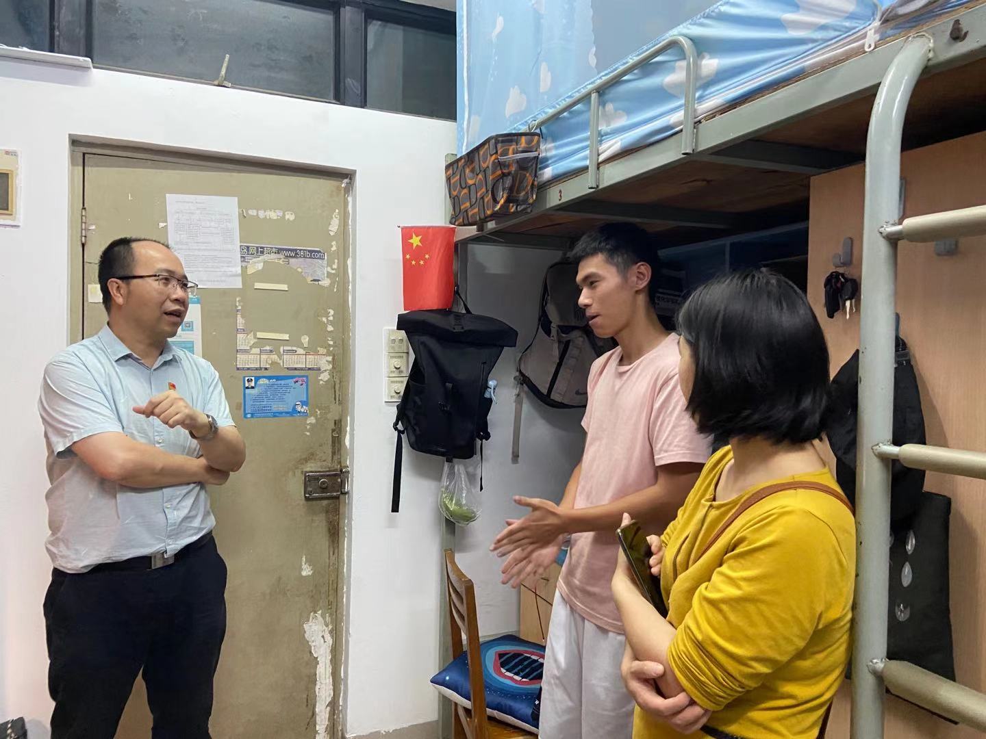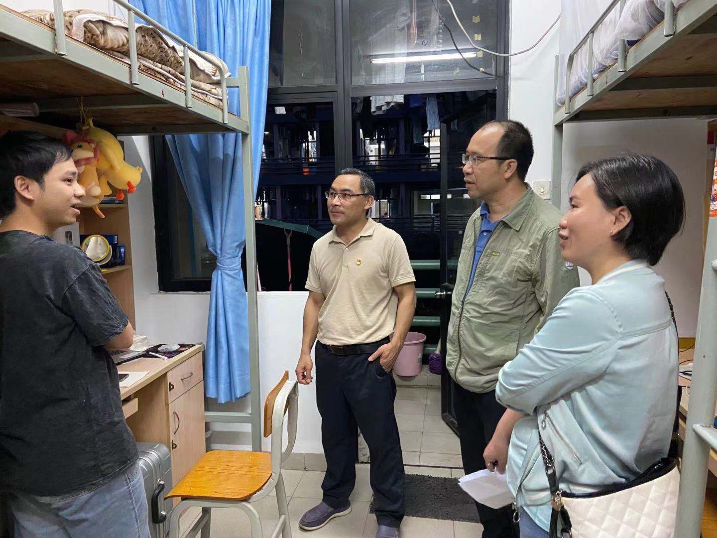 学院党委副书记张智、副院长郑杰率队走访了2017级、2019级学生宿舍,对学生宿舍安全、卫生、防范诈骗知识进行了检查,对特殊困难学生进行慰问、关心。在与学生交流中,老师们不断强调学生宿舍用水用电安全、环境卫生整洁,诈骗知识宣讲,进一步促进宿舍优良学风建设和防范诈骗知识入心、入脑。
