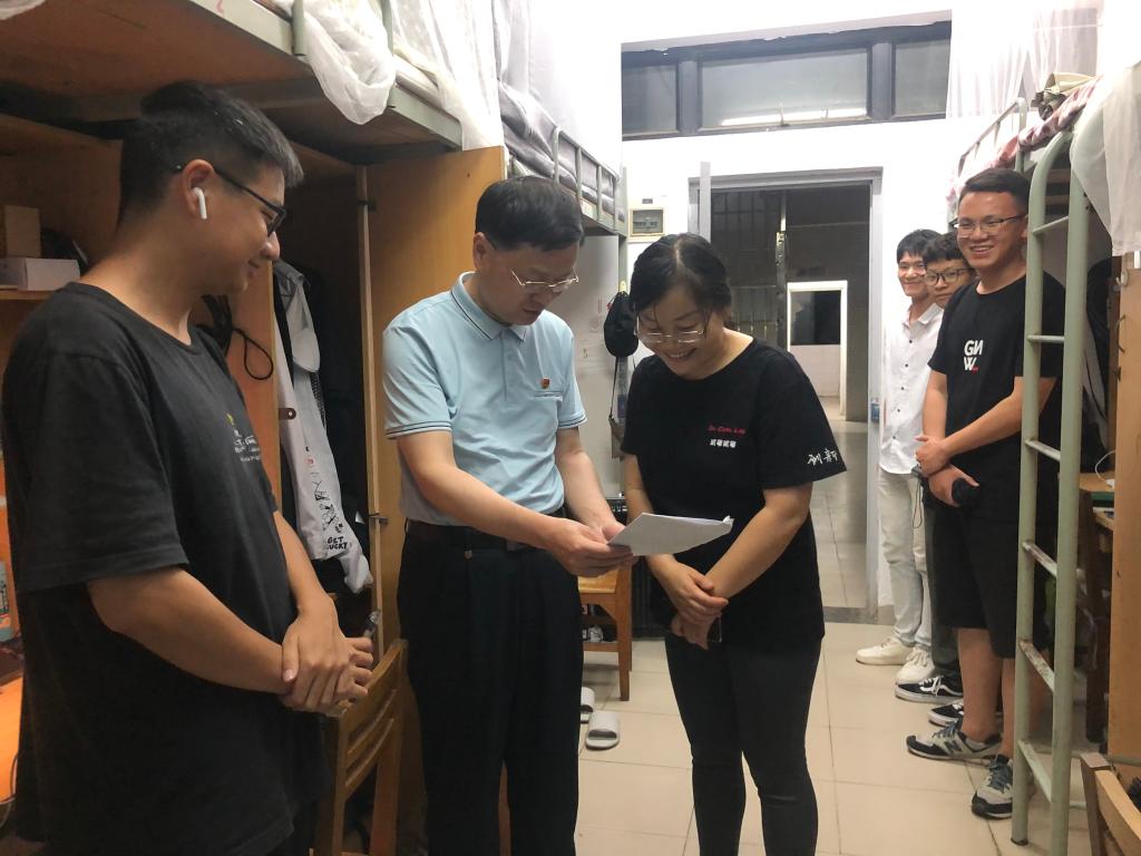 学院党委书记徐向东率队走访了2020级学生宿舍,对学生学习状况、生活适应情况进行了解,并与2020级制药工程专业杨佳德等同学交流学习党史心得,对同学们关于党的一大召开的历史进行了辅导学习,勉励同学们认真学习党史,掌握先进思想,认知当今世界,提高自身明辨是非的能力,同时不断汲取专业知识,贡献力量建设祖国。