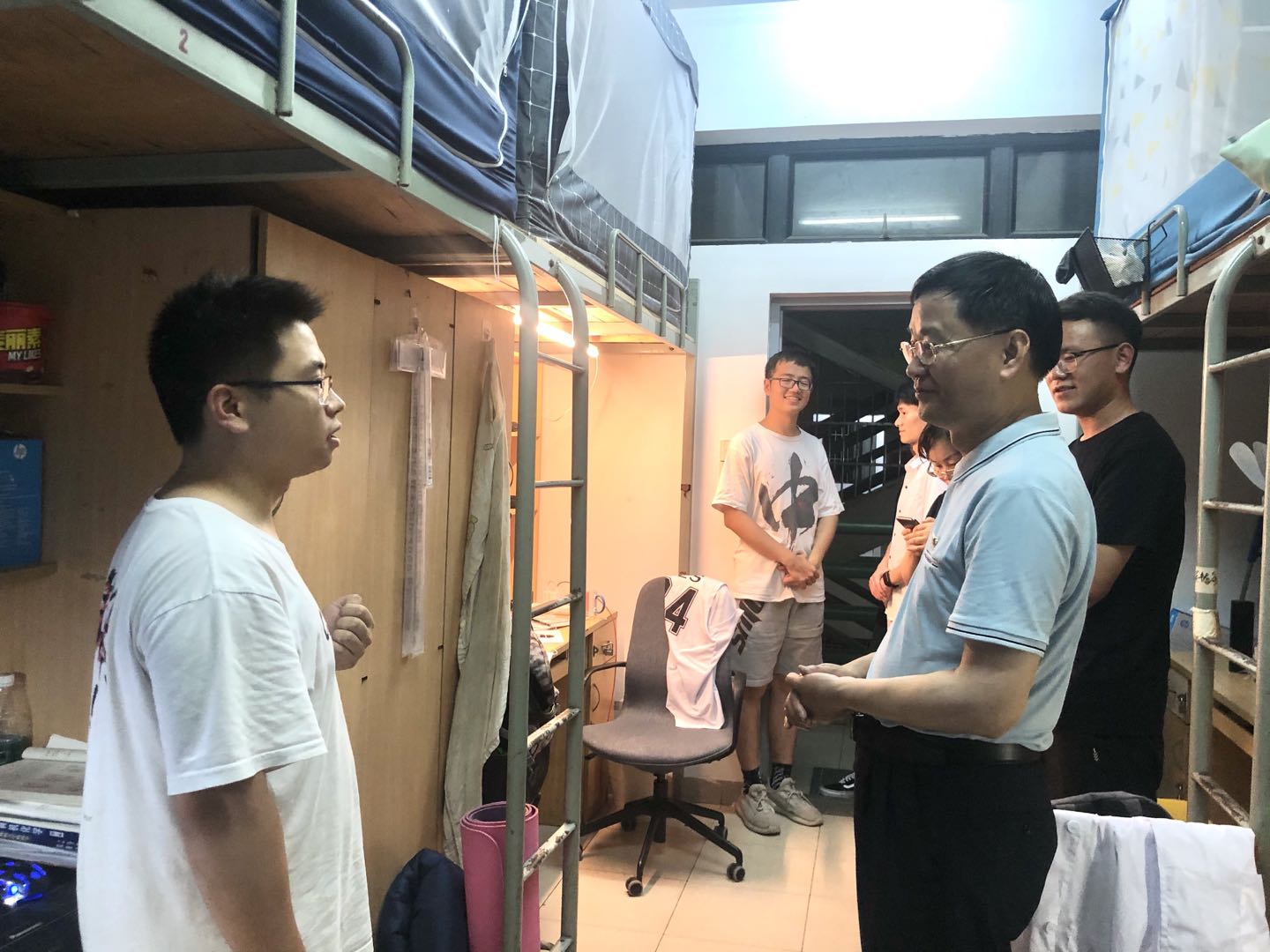 学院副院长卢宇靖会同学生工作处副处长王方率队走访了2018级宿舍,对学生考研、就业进行了指导。他认为,大三是大学学业阶段的关键时期,同学们要做好规划,做多手准备,勉励同学们从树立信心、找好定位、明确目标、掌握信息、积极行动等几个方面进行心态调整。