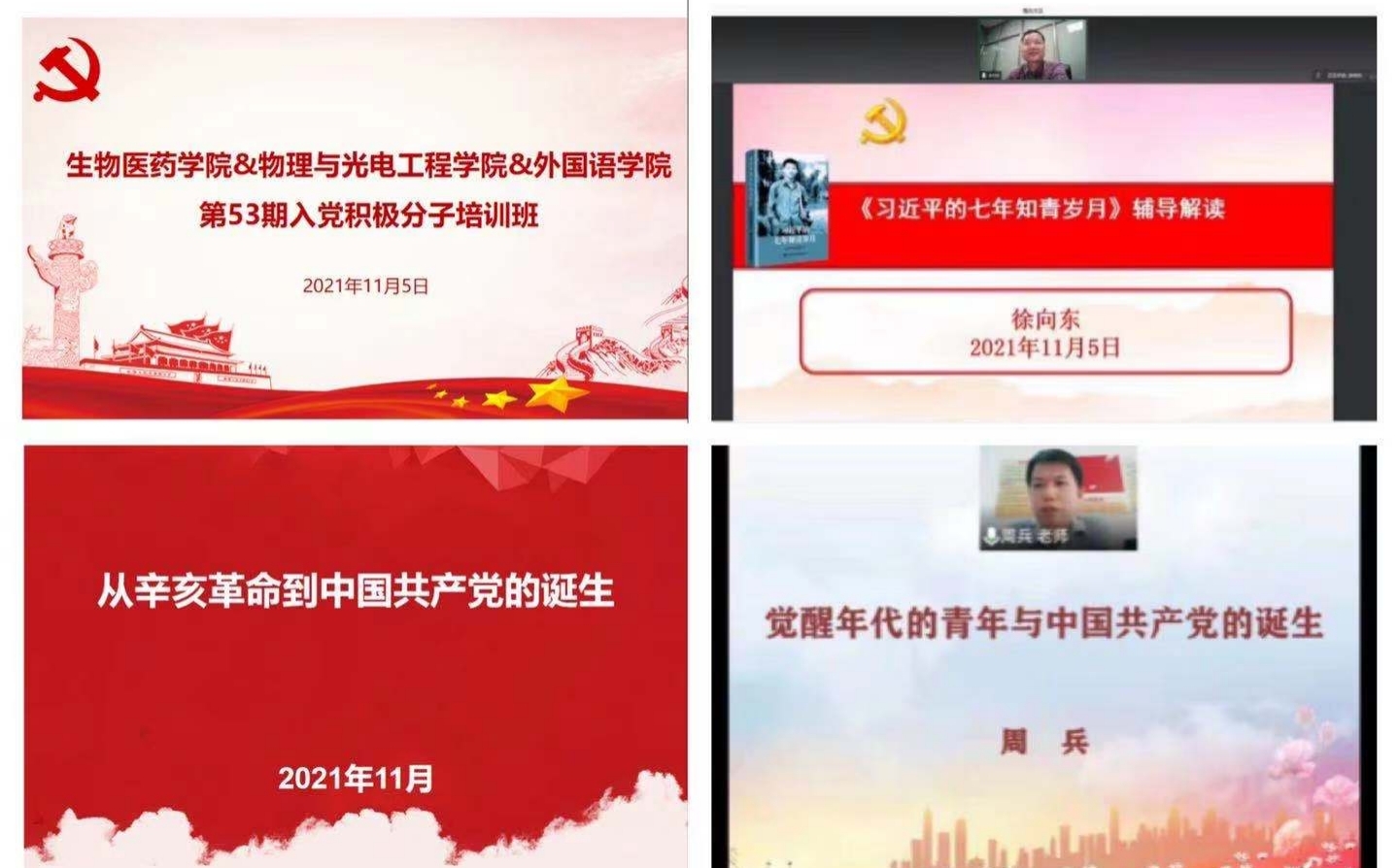 为加强对入党积极分子的培养教育,切实提高入党积极分子的政治素质和理论修养,11月5日-6日,漫蛙漫画 与外国语学院、物理与光电工程学院以线上线下结合的方式,联合举办第53期入党积极分子培训班。