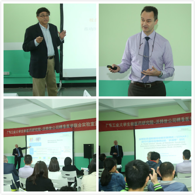 在与会人员的共同见证下,生物医药研究院谭文院长和沃特世公司中国区总经理于笑然先生分别代表双方签署协议并揭牌。 揭牌仪式后,双方领导嘉宾一同参观了全新落成的精准医学联合实验室。 沃特世公司是国际知名企业,也是高端分析仪器设备和分析技术的国际引领者。其设备和技术广泛应用于代谢组学和蛋白组学等精准医学研究领域。沃特世公司和世界知名高校如英国帝国理工大学等建立了数个国际实验室,广工联合实验室是沃特世公司在中国成立的首个精准医学联合实验室,配备了当前最先进的超高效液相色谱、高分辨质谱等一系列高效的分析仪器和软件,为精准医学研究提供了可靠的技术保障。联合实验室还设立了科研奖学金以鼓励和表彰作出突出贡献的青年学者、促进广工分析人才的培养、推动双方的科学研究。此外,沃特世公司还设立了约32学时的“高端分析仪器设备”课程,将委派国内外专家对本科生和研究生进行全面、深入的培训;并为我校优秀毕业生提供相关就业机会。 生物医药研究院-沃特世公司精准医学联合实验室的成立将最大程度地发挥双方在转化医学和精准医学的人才、智力和科技创新优势,为高校同企业实现深度对接、人才交互培养,科学研究与产业需求紧密结合发挥作用,共同推进科学文化为人类健康服务。