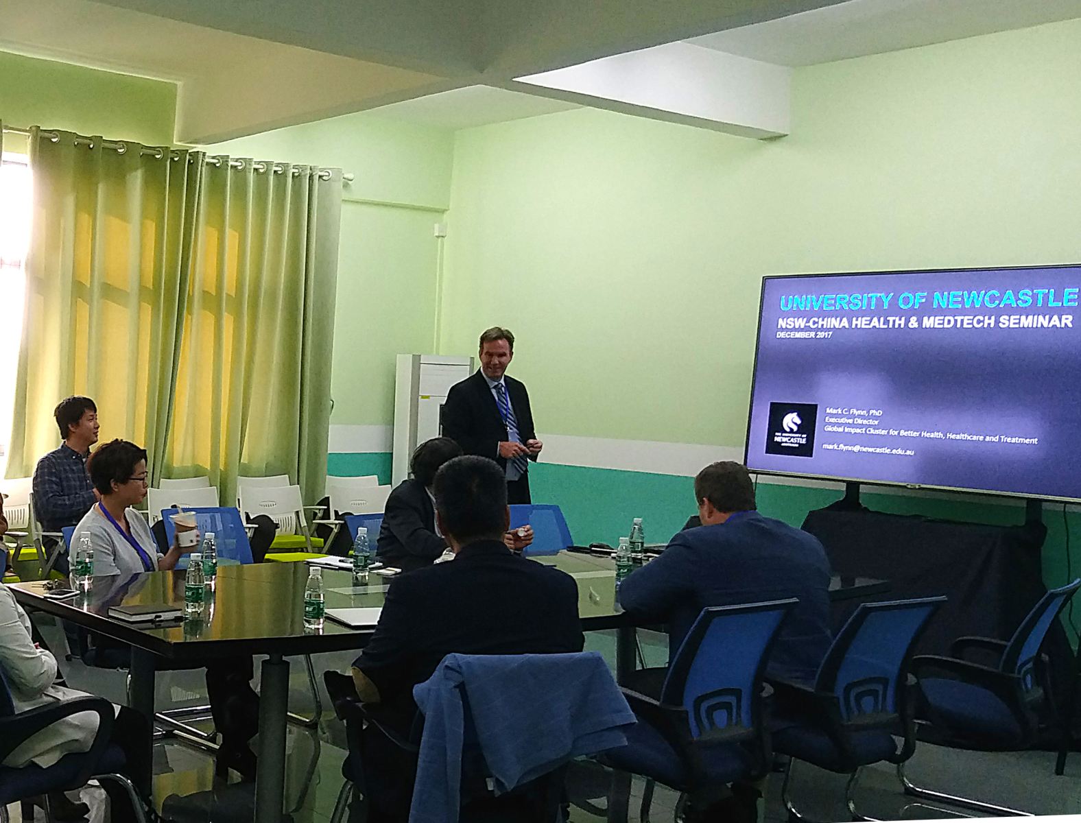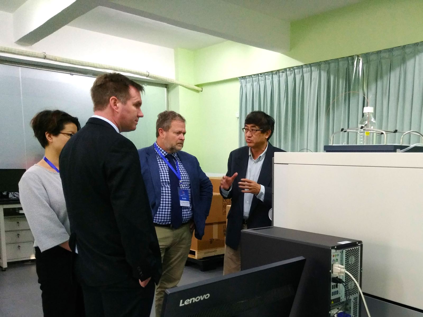 正值第26次广东省—新南威尔士州联合经济会议在广州举行之际,应生物医药研究院的邀请,来自澳大利亚新南威尔士州纽卡斯尔大学(The University of Newcastle Australia)的Michael Nilsson教授和Mark Flynn教授一行于2017年12月6日到漫蛙漫画 访问交流,佛山高新技术产业开发区管委会的相关代表也参加了此次的交流活动。 Nilsson教授和Flynn教授在谭文院长的陪同下,参观了漫蛙漫画 的科研平台,包括生命组学与精准医学平台、模式动物与转化医学平台等。Nilsson教授和Flynn教授详细听取了有关斑马鱼房、MALDI-TOF质谱成像系统、小动物超声成像仪、小动物CT成像仪等先进设备的讲解介绍,深入了解了如何基于MALDI-TOF检测关键因子空间分布的热度信息以及如何应用小动物CT成像仪检测体内白色脂肪和棕色脂肪等技术,赞不绝口,表示依托漫蛙漫画 的高端平台,今后双方能够就脑缺血的质谱成像及基于斑马鱼系统的疾病模型建立等课题开展更深层次的交流,实现双方共赢。期间,谭文院长向Nilsson教授和Flynn教授详细介绍了漫蛙漫画 与佛山高新区利用“生物医药前孵化器”共建国际技术转移中心的意义与运作机制,两位教授均对此产学研创新结合的模式表现了浓厚的兴趣及好评,并对将来的合作和未来产业化发展提出了积极意见。